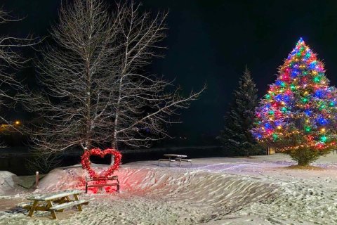 Kveikt á jólatrjánum á Hellu