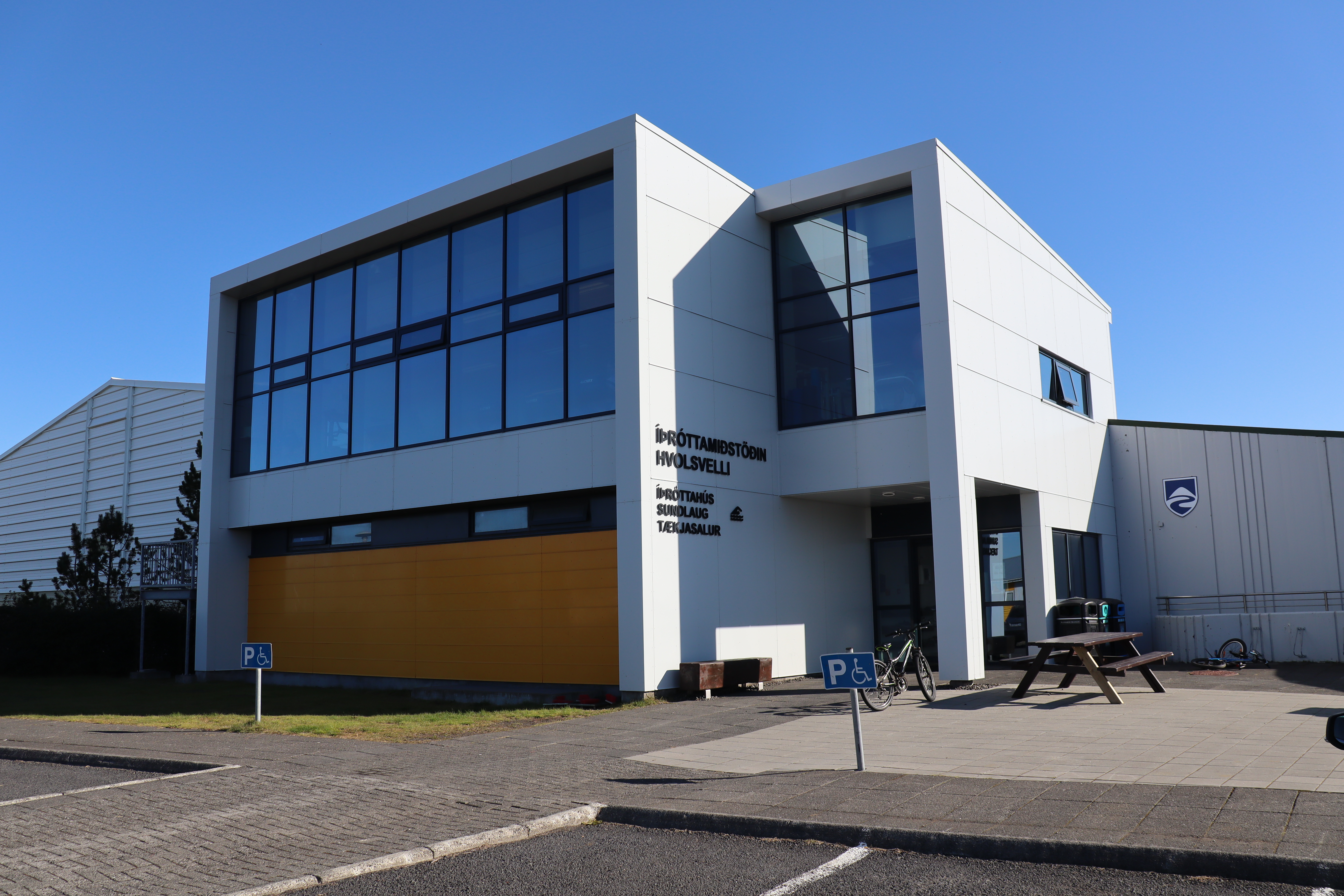 World Class er með glæsilega stöð á Hellu. Gengið er inn hjá sundlaug.